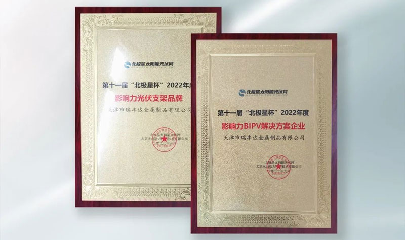 瑞豐達攬獲第十一屆“北極星杯”光伏影響力品牌兩項榮譽!