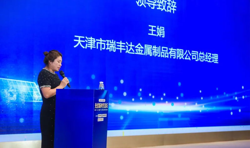 作為本屆論壇的主辦方之一,天津市瑞豐達金屬制品有限公司總經理王總上臺致辭,歡迎光伏領域的專家學者、企業領袖、業界精英的到來,感謝大家在百忙之中抽出時間來到會議現場,大家歡聚一堂、共同探討、深入交流,共議“雙碳”目標下光伏產業發展思路及未來展望。