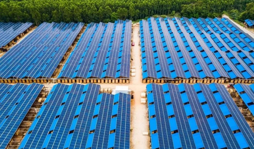 ????????中電合浦烏家鎮“林光互補”光伏發電項目,位于廣西壯族自治區北海市合浦縣,為生態林業光伏大棚發電項目。項目光伏組件選用單晶硅電池組件,采用耐候鋼光伏支架,固定式光伏陣列最佳傾角(15°)安裝在木材晾曬大棚頂上。逆變器選用組串式逆變器。光伏電站內設28個光伏發電子系統,通過35 kV集電線路接入110 kV升壓站,經1臺50 MVA主變壓器升壓至110 kV后,以一回110 kV線路接入北海電網,太陽能光伏電站發出的電量直接上網。電站總裝機容量為50MW,分兩期建設,一期建設20MW,二期建設30MW,一、二期工程投資概算3.51億元。兩期建成后年均發電量約為3717.14萬kW·h,每年可節約標煤21947噸。