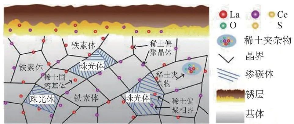 稀土原子化學性質具備活潑、結合力強等特性,將稀土添加到鋼中可起到改善凝固組織、細化固態相變組織、使夾雜物變形無害化、偏聚強化界面、鈍化表面銹層等作用,從而顯著提高鋼的韌性、耐蝕性能、抗疲勞性能、耐熱性能等。 耐候鋼由普碳鋼添加少量銅、鎳等耐腐蝕元素而成,具有優質鋼的強韌、塑延、成型、焊割、磨蝕、高溫、抗疲勞等特性;耐候性為普碳鋼的 2一10 倍,涂裝性為普碳鋼的 1.5一10 倍。
