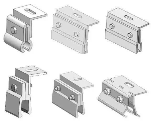 2、彩鋼瓦屋頂裝置系統:彩鋼板屋頂多用卡扣、暗扣、鎖邊等非穿透方式裝置,特殊狀況下可采用穿透性裝置。