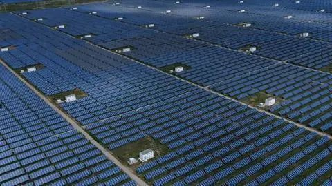 深藍色的光伏板熠熠生輝,風(fēng)力發(fā)電機的葉片迎風(fēng)飛轉(zhuǎn),百米高的吸熱塔和“鏡子海洋”組成科技感十足的熔鹽塔式光熱電站……真沒想到,塔拉灘這片半荒漠化的“風(fēng)沙之地”,如今卻成為千萬千瓦級的新能源基地。